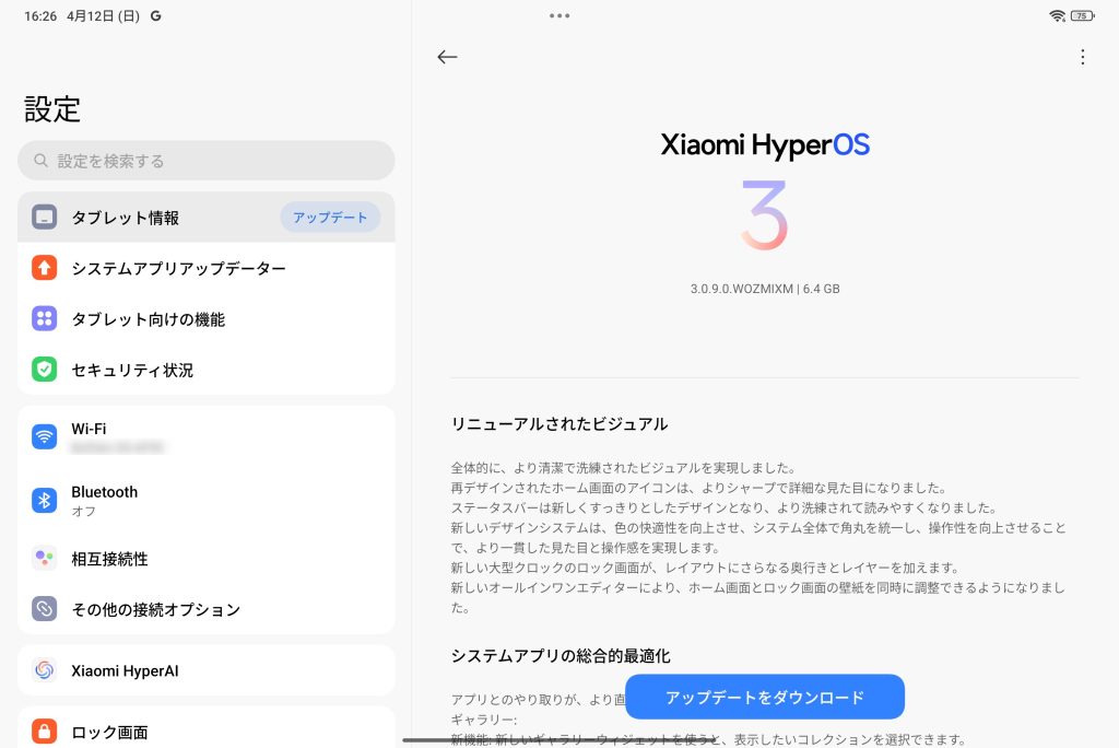 また、購入直後からHyperOSのアップデートが複数回配信されており、継続的に改善されている点も安心感があります。